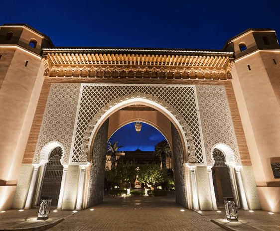Avancez au milieu de cette majestueuse allée qui mène aux trois portes, dans cet éden inlassablement beau, inlassablement paisible qu’est l’arrivée sur le Royal Mansour. Quelques pas encore et c’est la porte du paradis. Devant elle, veille un ange gardien dans son costume rouge vermillon. Il entrouvre la porte de bronze ciselé et là c’est un second éblouissement. Une profusion de grenadiers, de gardénias, de bougainvilliers et de fleurs d’oranger. Un bouquet de fragrances délicieuses saturent l’air. C’est un vase rempli de parfums, de jasmin, de rose et de chèvrefeuille. A la place du bruit, s’est glissé comme en contrebande, une musique liquide, celle de l’eau qui court le long des canaux, le doux murmure jaillissant des fontaines, le chant délicat des oiseaux. Les sens s’éveillent à cette harmonie liquide. L’esprit se détend, se délasse, s’étire, surpris par cette paix incroyable. On marche et on a l’impression de traverser une myriade d’instants poétiques. Dans ce pays d’énigmes et de mystères, cette oasis de silence a des allures de mirage.