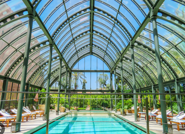 Et au milieu, dans la vasque du bassin, toujours le chant de l’eau… Après les 1001 nuits, c’est les 101 soins du Spa. Avec bien sûr, les marques célèbres comme Chanel, Sisley pour la mise en beauté, les soins de la peau et les maquillages. Et pour le corps, pour les dermes assoiffés de douceur et d’hydratation, une adorable gamme de soins « marocMaroc », aux noms chantants : « Rose velours », « Infusion d’orange ». Tout est fait ici pour offrir à l’esprit et au corps un délassement incroyable. Deux hammams, un bassin Watsu, un sauna, un coiffeur, une magnifique piscine au toit ouvrant et aux dimensions olympiques. En un mot, un équipement ultra moderne dans un monde de tradition. Le rêve… Maupassant n’aurait pas hésité à le confirmer : » Le voyage est une espèce de porte par où l’on sort de la réalité pour pénétrer dans une réalité inexplorée qui semble un rêve. »