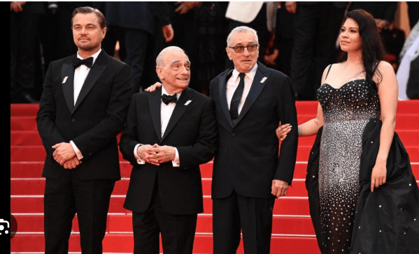 Léonardo Di Caprio, Martin Scorsese, Robert de Niro, Cara Jade Myers, au 76e Festival de Cannes.