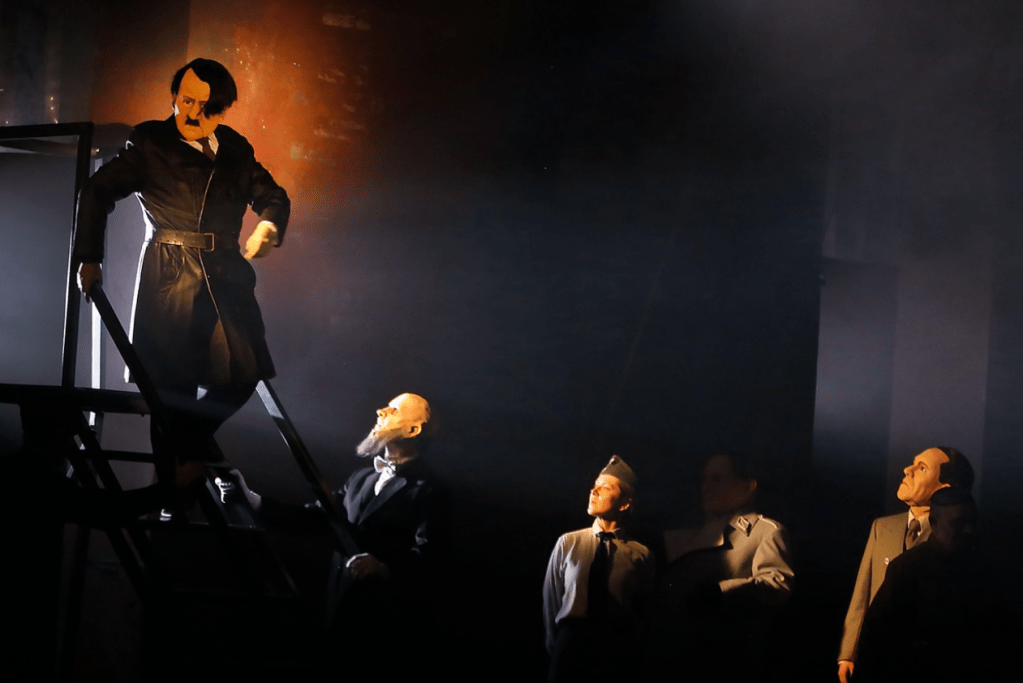 La marionnette la plus crédible, celle d’Hitler, se grave dans la tradition des spectacles mnouchkiniens; de ces spectacles qui font tournoyer l’œil dans le rêve, avec la simplicité et le brio des nuances du Théâtre du Soleil fondé en collaboration en 1964.